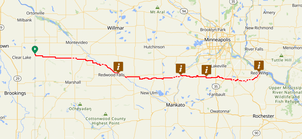 BUILT-IN SUPPORT OPPORTUNITIES ALONG THE WAY CAN BE FOUND IN MORTON AT MILE 85, HENDERSON AT MILE 151, VESELI AT MILE 178, AND A COUPLE BLOCKS OFF OF THE COURSE IN CANNON FALLS AT MILE 214. REMEMBER, YOU ARE RESPONSIBLE FOR YOU!